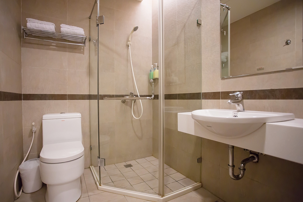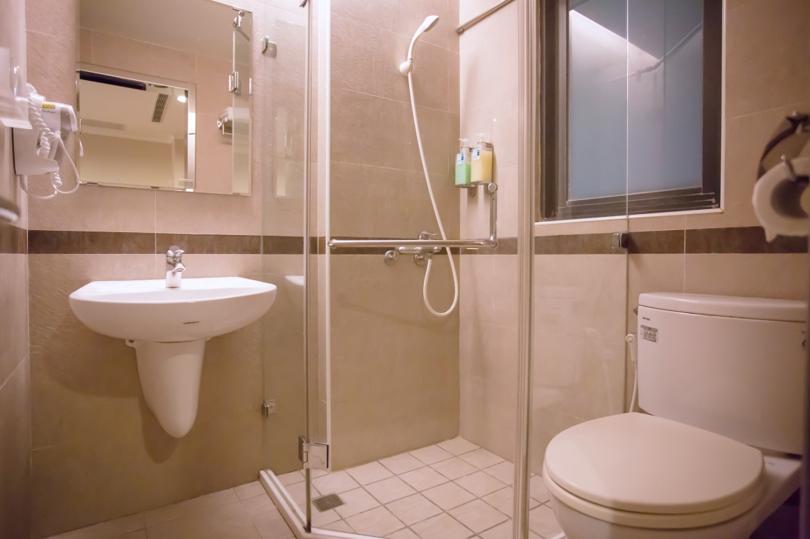 施芙儂洗髮乳、施芙儂沐浴乳、香皂、小毛巾、大浴巾、壁掛式吹風機、