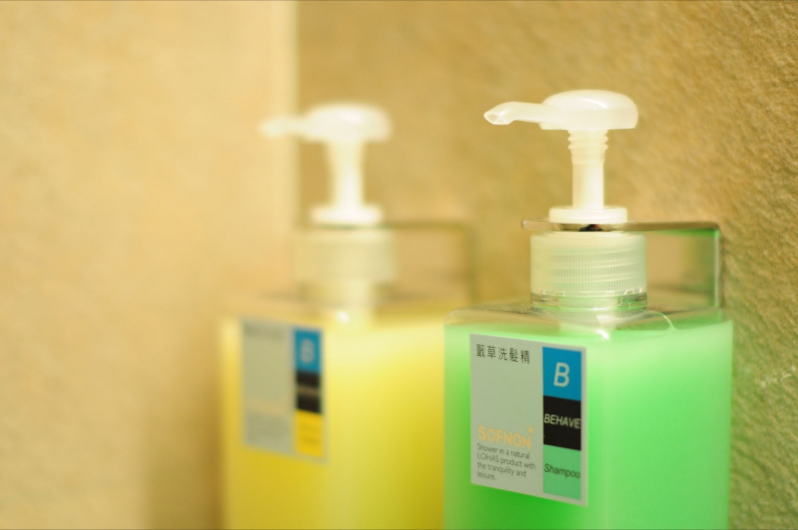 施芙儂洗髮乳、施芙儂沐浴乳、香皂、小毛巾、大浴巾、壁掛式吹風機、