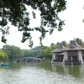 公園內的「兩亭一樓」─歐風洋式建築的市定古蹟「湖心亭」、僅存的臺灣府城遺跡「望月亭」、臺灣唯一的中式更樓建築物「更樓」─在自然的包圍下,更顯古色古香。